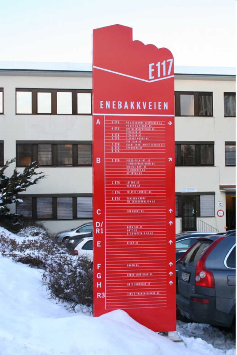 The former Luxo building from 1963 required a wayfinding system before it went on the market to new tenants. We created a visual identity based on the building’s architectural silhouette.